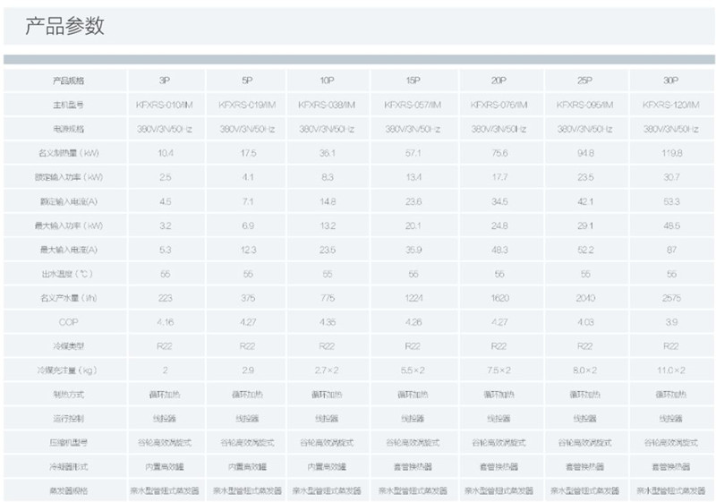 注:實際熱水產品量根據環境溫度略有上下浮動